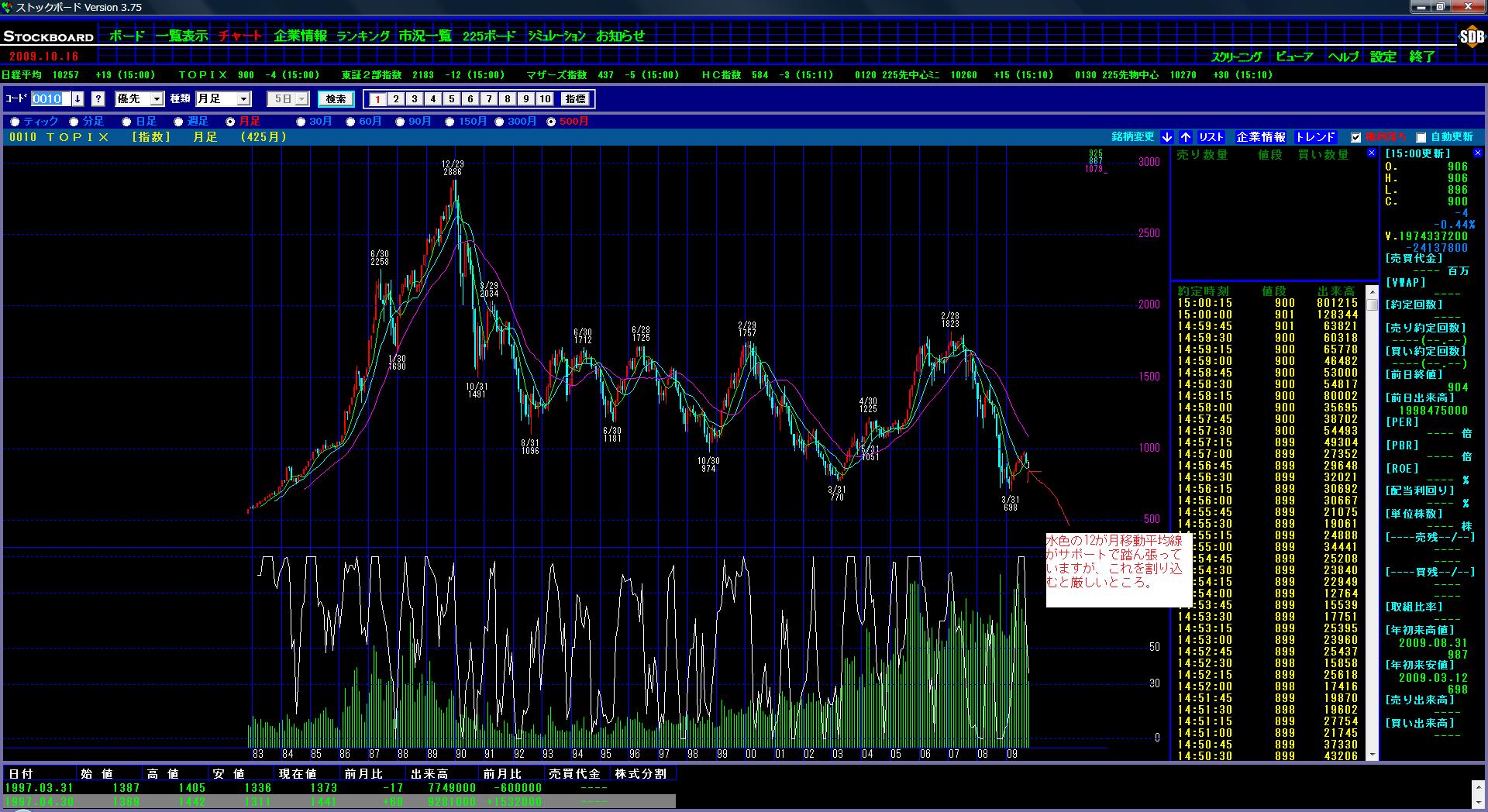 あんまり短期ばかり気にしても仕方がないので3枚目はTOPIXの月足です。