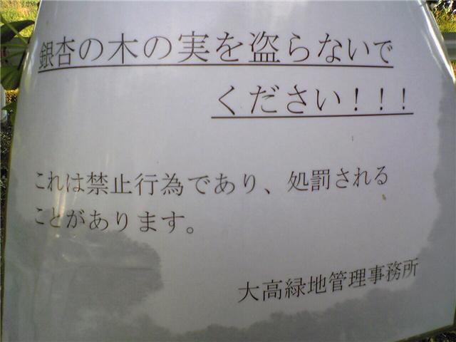 銀杏取るべからず!!思わず笑う看板!! 2009年10月18日