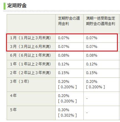 定期預金の金利を見てみました。