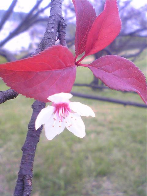 秋、春、はな:滝の水公園のベニスモモが咲いています。スモモもモクレンでしょうか?春の花が咲いています。秋の珍事。