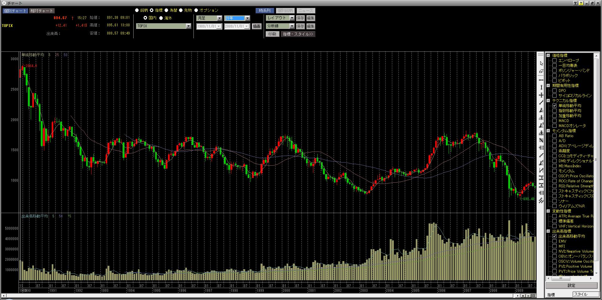 長期で見るとやってはいけないことは、ピンク25ヶ月移動平均線の下で株を買ってはいけない。