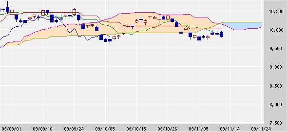 日経平均株価 9,804.49 -67.19 -0.68%