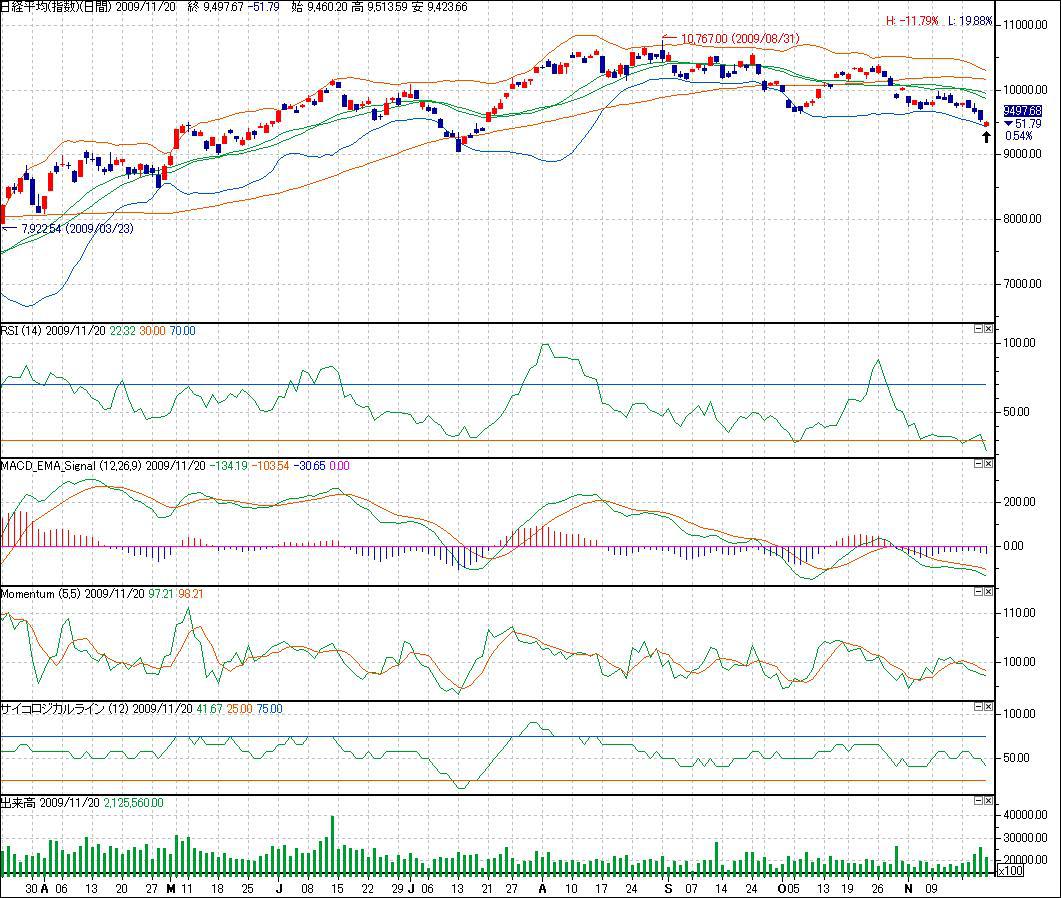 【解説!?】[日経平均 9,497.68(9,770.31)]()は一週間前