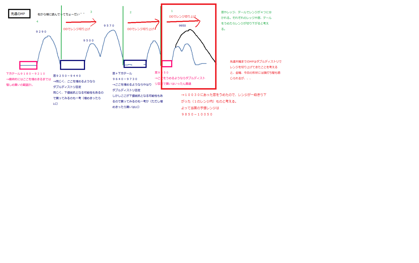 先週はDDでレンジ切り上げの動きが続いていましたので、今週とは逆の動きでした。