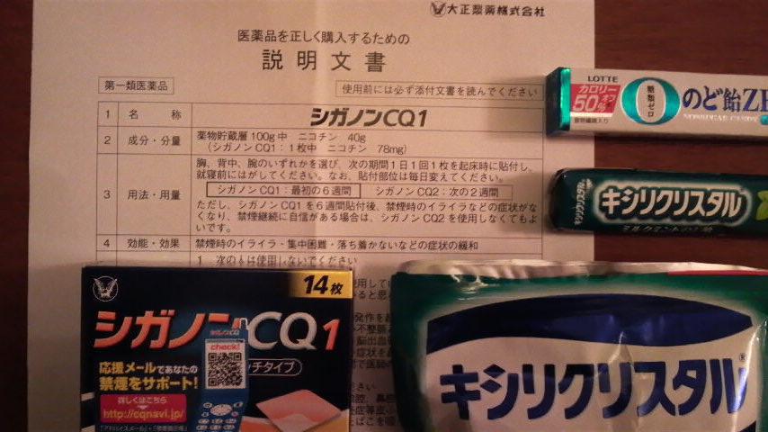 すっきりしたところで、「ニコチネル」を貼ってスタートしました。