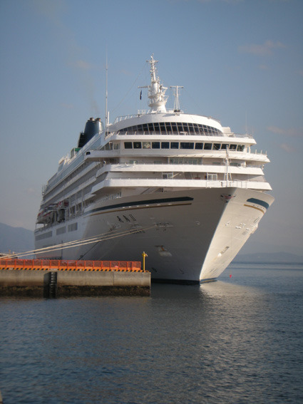 散歩に行く港に飛鳥Ⅱが寄港していました。