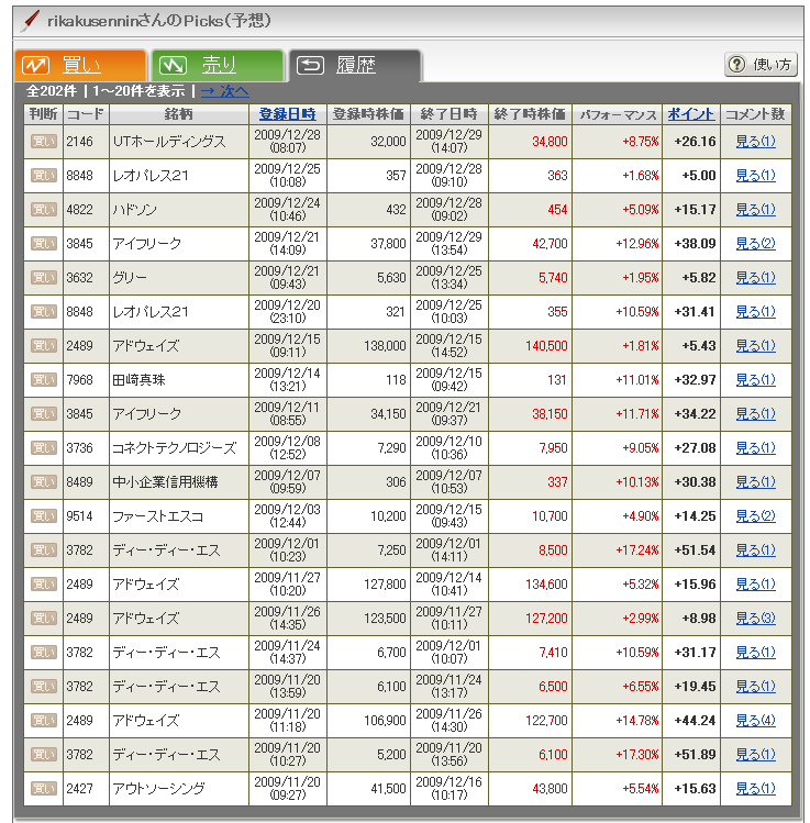 私の勝って気ままな予想でリカク履歴(きっとウソだっ!)