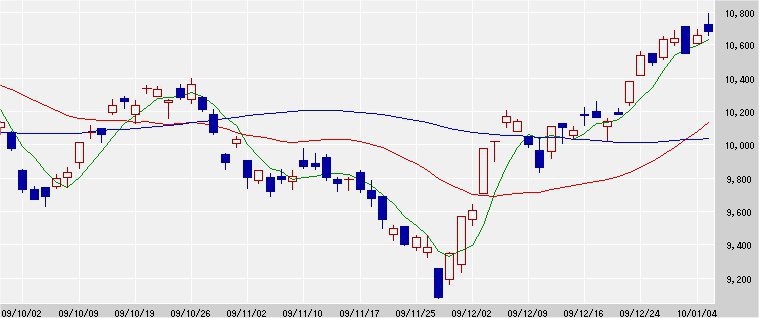 75日移動平均線 10,039↑