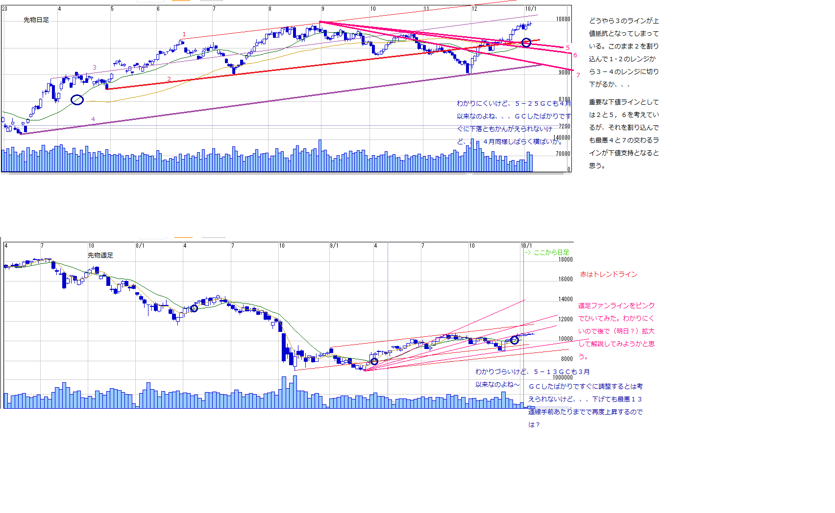 画像にトレンドラインとファンライン、一目とボリバン、MACD,RSIの様子を追加しました☆