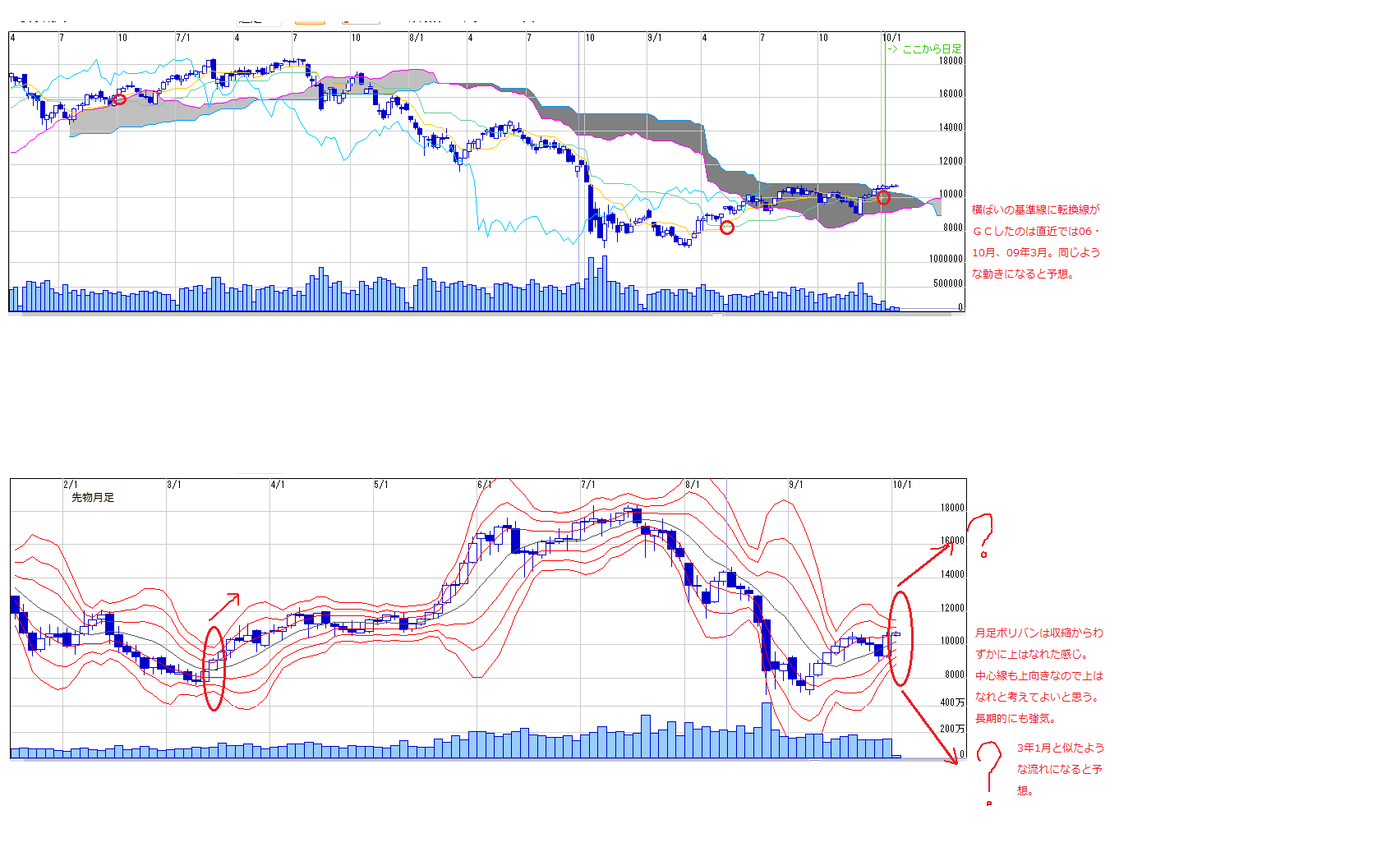 チャートを見る限り、日足⇒弱気、週足⇒強気継続、月足⇒新たな上昇相場の始まり、、、といった感じで、短期弱気、中長期強気です。中長期上昇相場の始まりかもしれないので、あくまで押し目買い狙いで行きたいと思います。