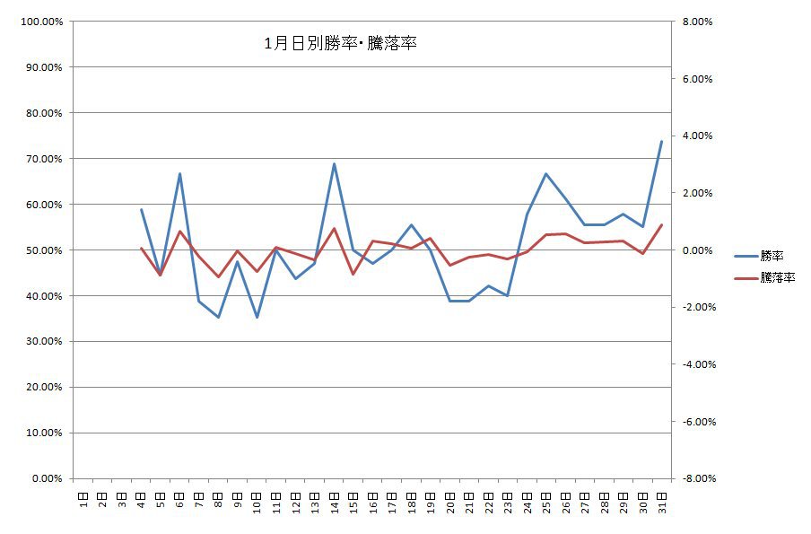騰落率はマイナスに傾いているんですね、しかも今年最初の金曜日を迎えてますし少し慎重に行動したほうが良さそうですね。