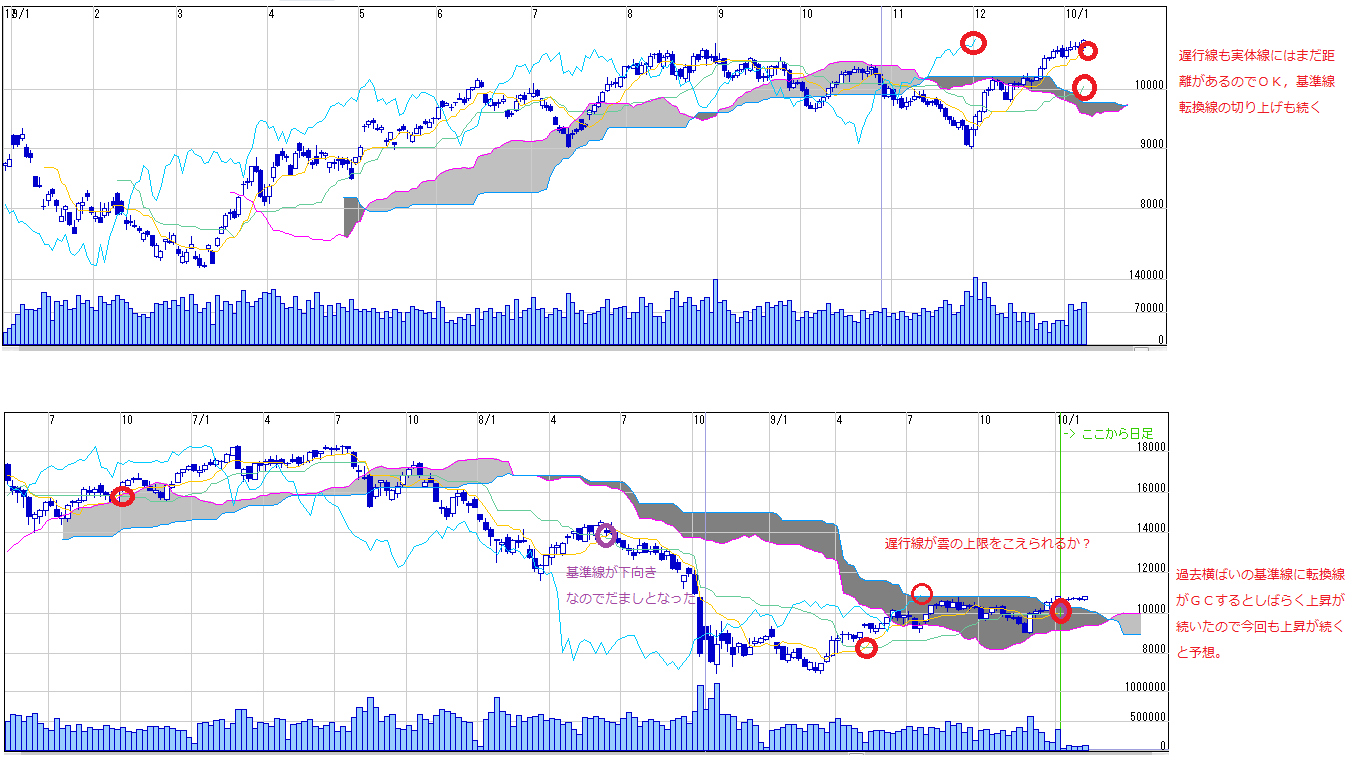 ・基準線が横ばいor切り上げが続くならOK,切り下がり始めたら注意か。