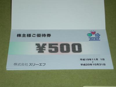 スリーエフ 株主優待到着