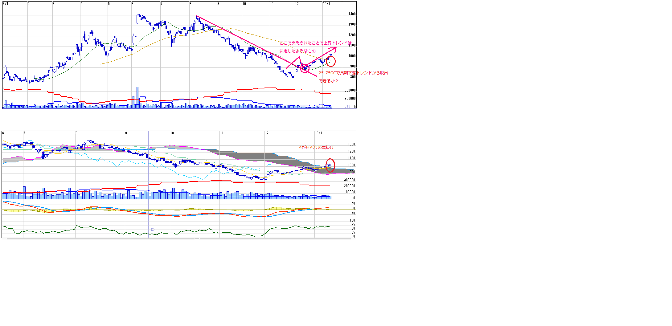 6ヶ月下落率の高い銘柄チャートをみていたら、タムロンの名前を発見しました。で、チャートをみていたら底打ちの兆しあり、、、
