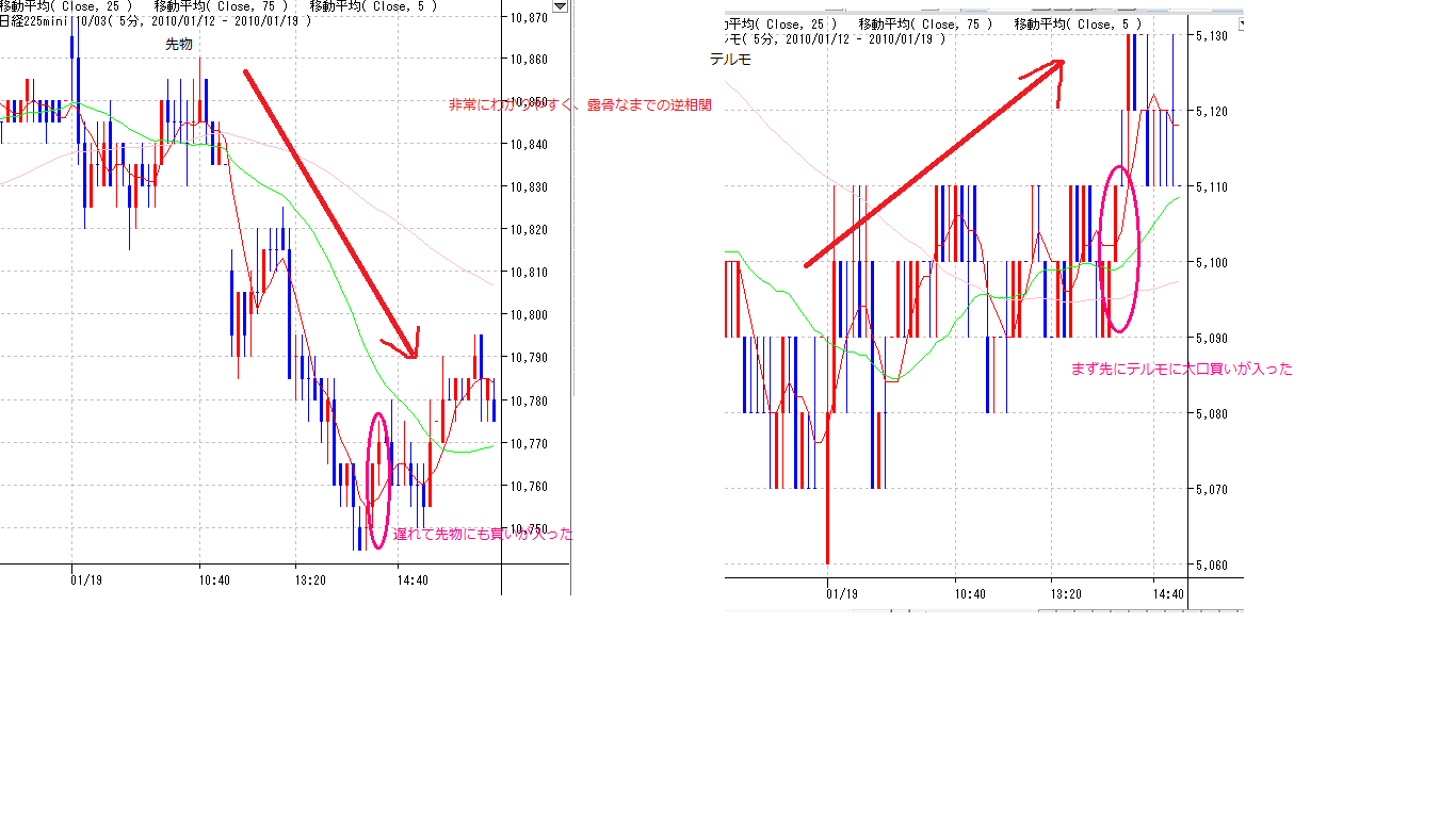 ・あと、今日は最後板をみていたら、テルモに大口買いが入り、遅れて先物が反応(上昇)しました。こういうところにアルゴの超高速取引で裁定取引はいってるんだろーな~ と思いつつ、、、