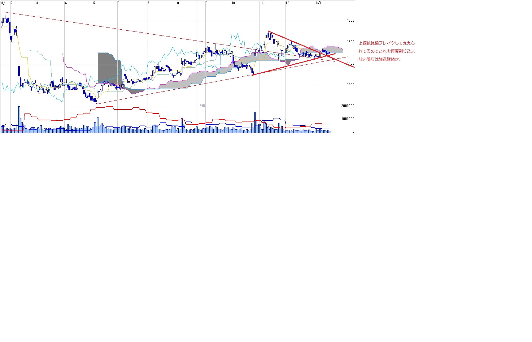 ・収縮中でにつまってますので今後どちらかに大きく動きそうな気配です。動いたほうにつくのが懸命だと思います。