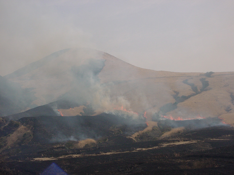 阿蘇の野焼きと火口