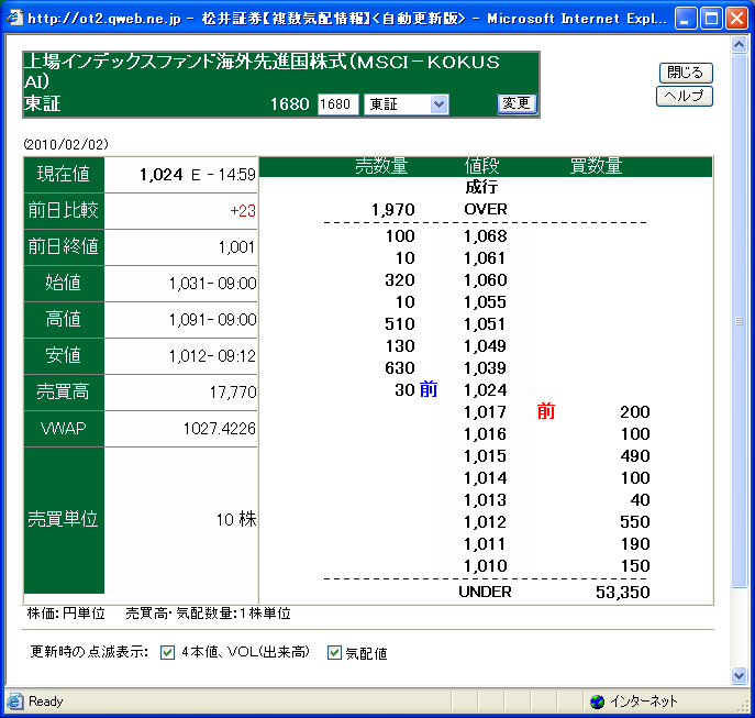 上場MSコク(1680)ETFの寄り付き直後
