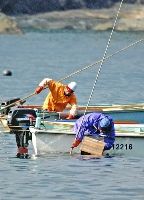 初日は素潜り分を含めてアワビ、ウニ、ナマコなど計約170kgが日和佐漁港に水揚げされた。