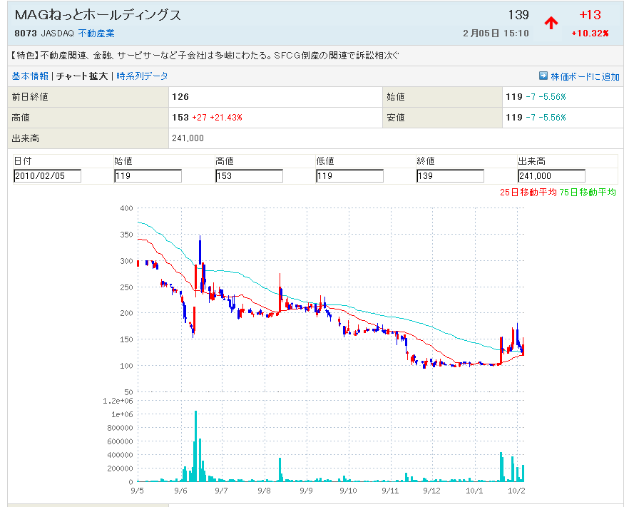 1月29日の日記にも書きましたが、8073:MAGネットが切り返します!!!