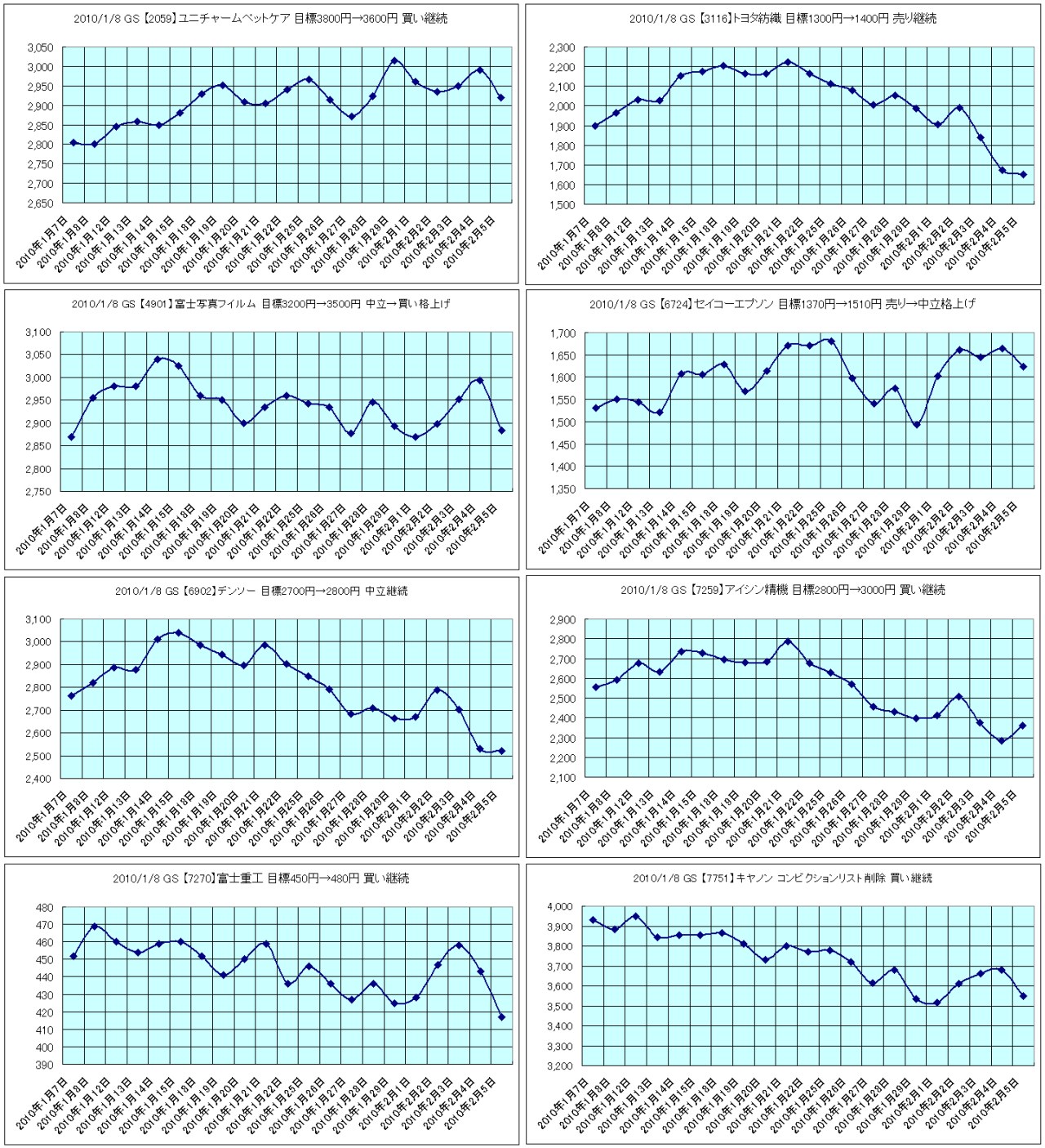 2010/1/8 GS 【3116】トヨタ紡織 目標1300円→1400円 売り継続