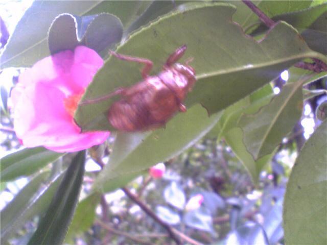 梅の花が咲いていますが、椿の葉の裏側に去年のセミの抜殻がぶら下がっていました。なんとなく悲しい思いになります。夏を思い出したりします。梅は白須賀 。