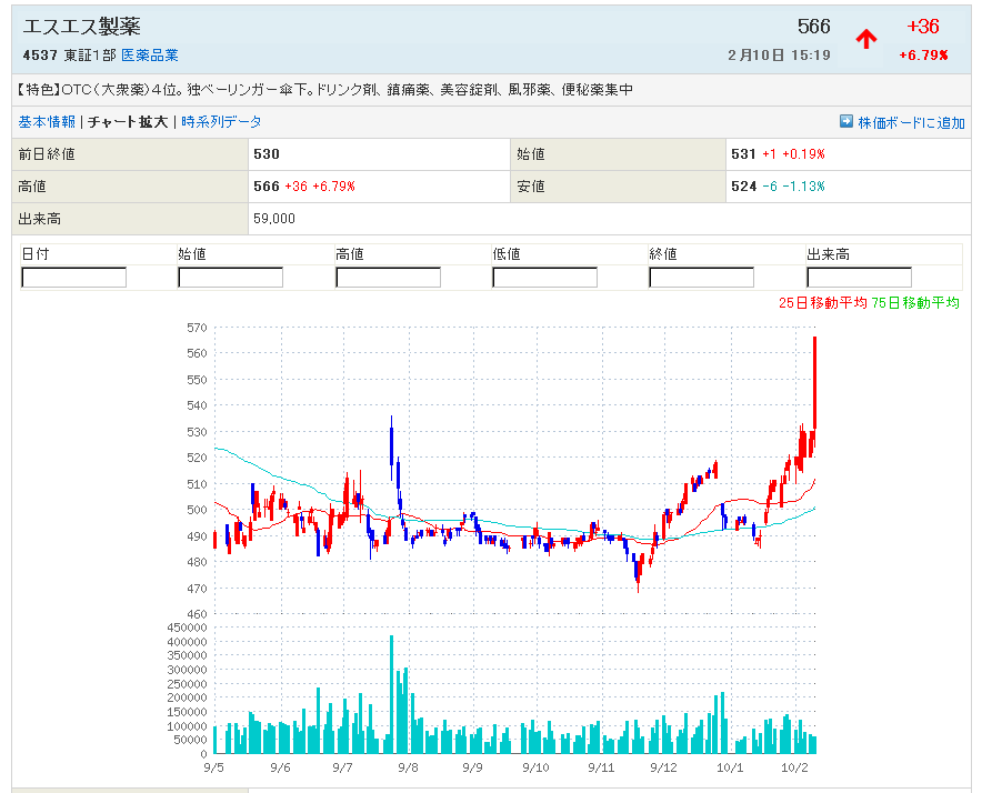 4537:エスエス製薬がTOBされる??空売りした人はSOS発声です!