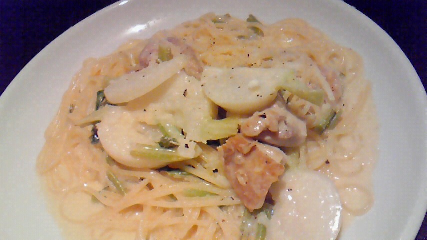鶏とかぶのパスタです。なんとなく優しい組み合わせ☆