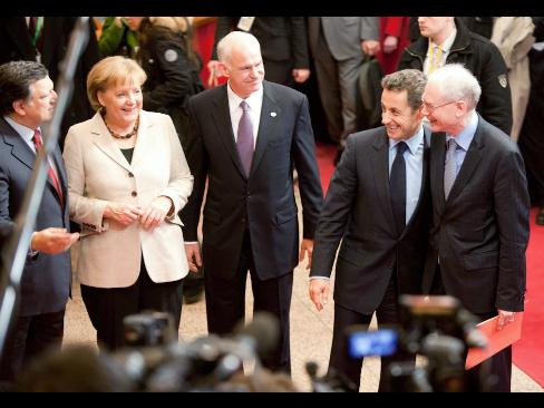 EU首脳会合前にメルケル首相を中心にギリシャのパパンドレウ首相、トリシェECB総裁、ファンロンパイEU大統領、サルコジ仏大統領、スペインのサパテロ首相、ユーロ圏財務相会合(ユーログループ)のユンケル議長(ルクセンブルク首相兼国庫相)がギリシャ支援について協議。ブラウン英首相らは参加しなかった。