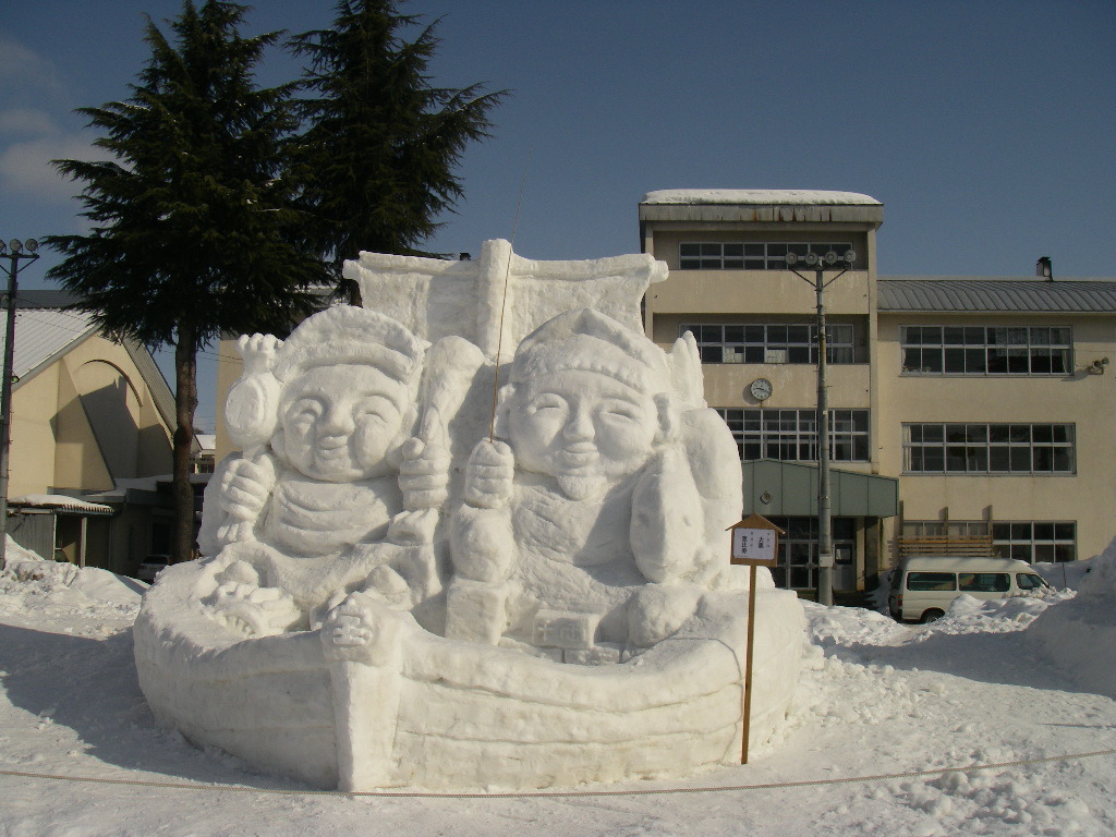 盛大に雪祭りが行われており、特に今年は雪多く雪像も立派でした。