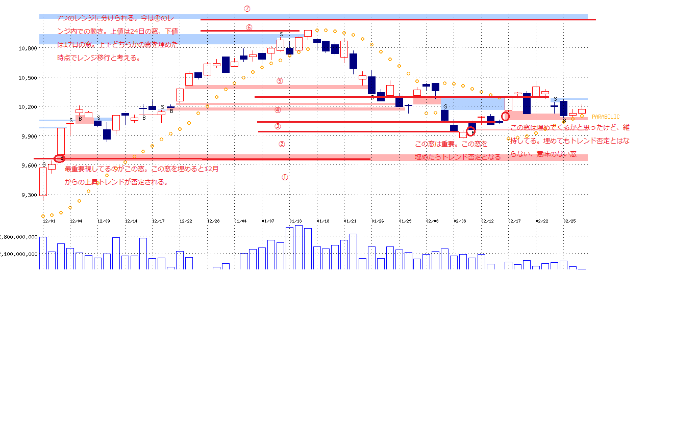 パラボリックは陰転回避。ただ明日大陰線ひくとパラボリックは陰転する。。。