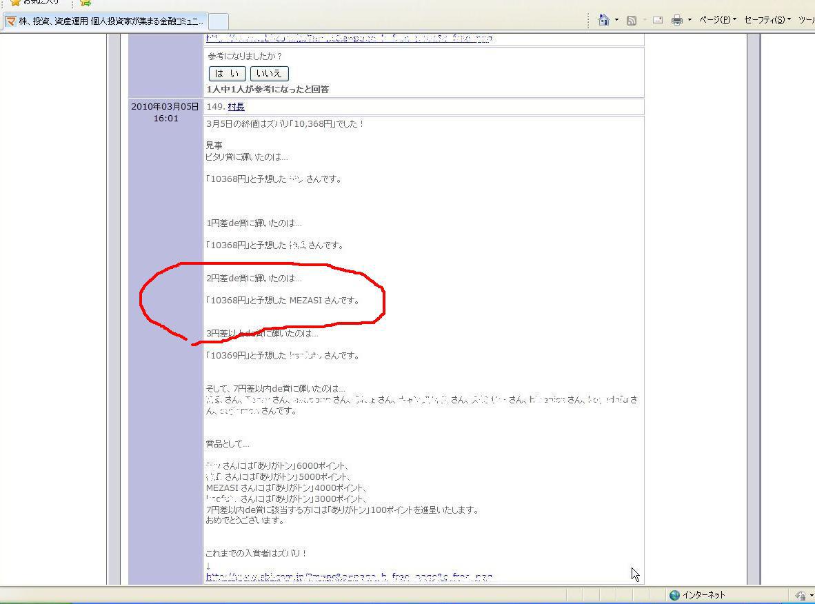 SBIマネーワールドには、毎週金曜日の終値を水曜日24時までに予想するコミュニティがありますが、なな何とドンピシャでした。