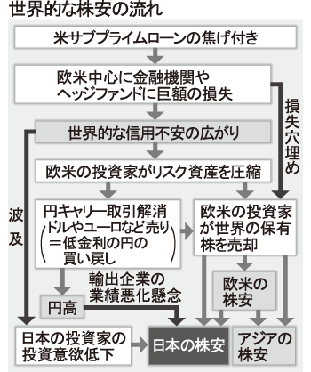 このフロー「日本の株安」に一番多く矢印が向いていて、一番底辺にあることで、外部要因は注意深く観察しなければなりませんね。