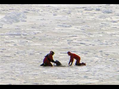 Boys of 16 years old rescued it when it was inserted between the ice which froze and a dolphin was over.