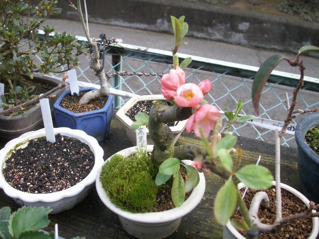 我が家の盆栽のぼけも綺麗な花を咲かせています[1:007]