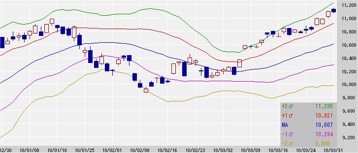 5日移動平均線 10,999↑