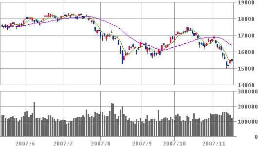 日経平均もダウと同じように、迷っているようなチャートから引け前に大きく下落しました。