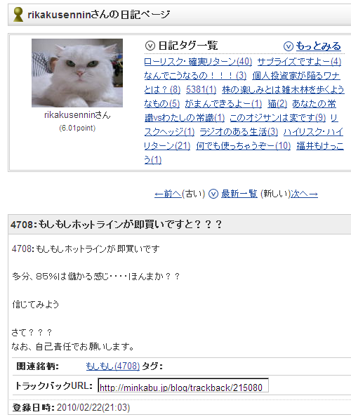 2月22日の日記で、