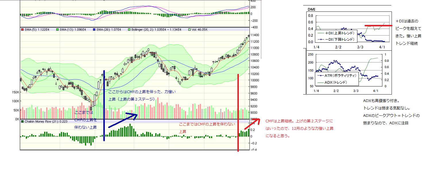 ・12月の上昇と同じく、CMFの上昇を伴った力強い上げの第2ステージ。