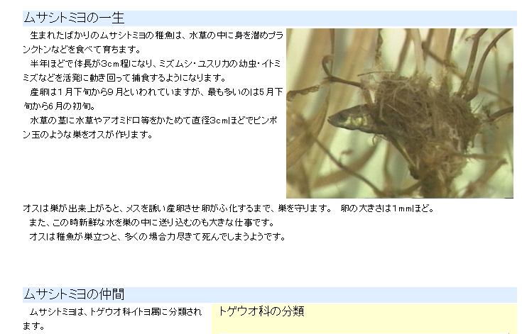 前回のさかなじゃん!のイトヨの親戚で、イトヨより小さく、1~2cmの小さい魚です