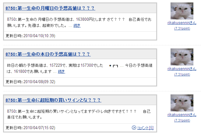 8750:第一生命の月曜日の予想高値は???