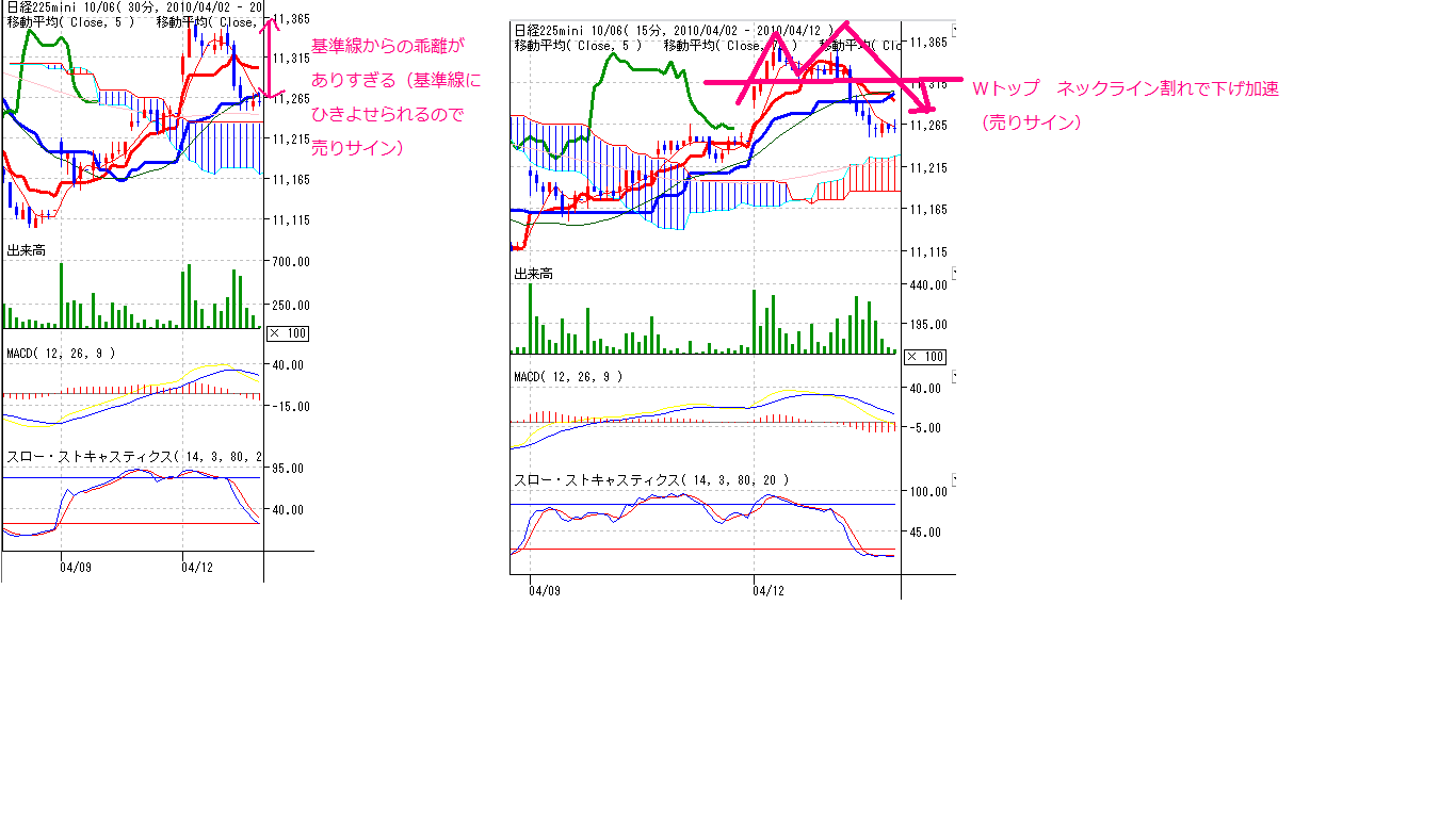 Wトップでネックライン割れで下げ加速、、、わかりやすい