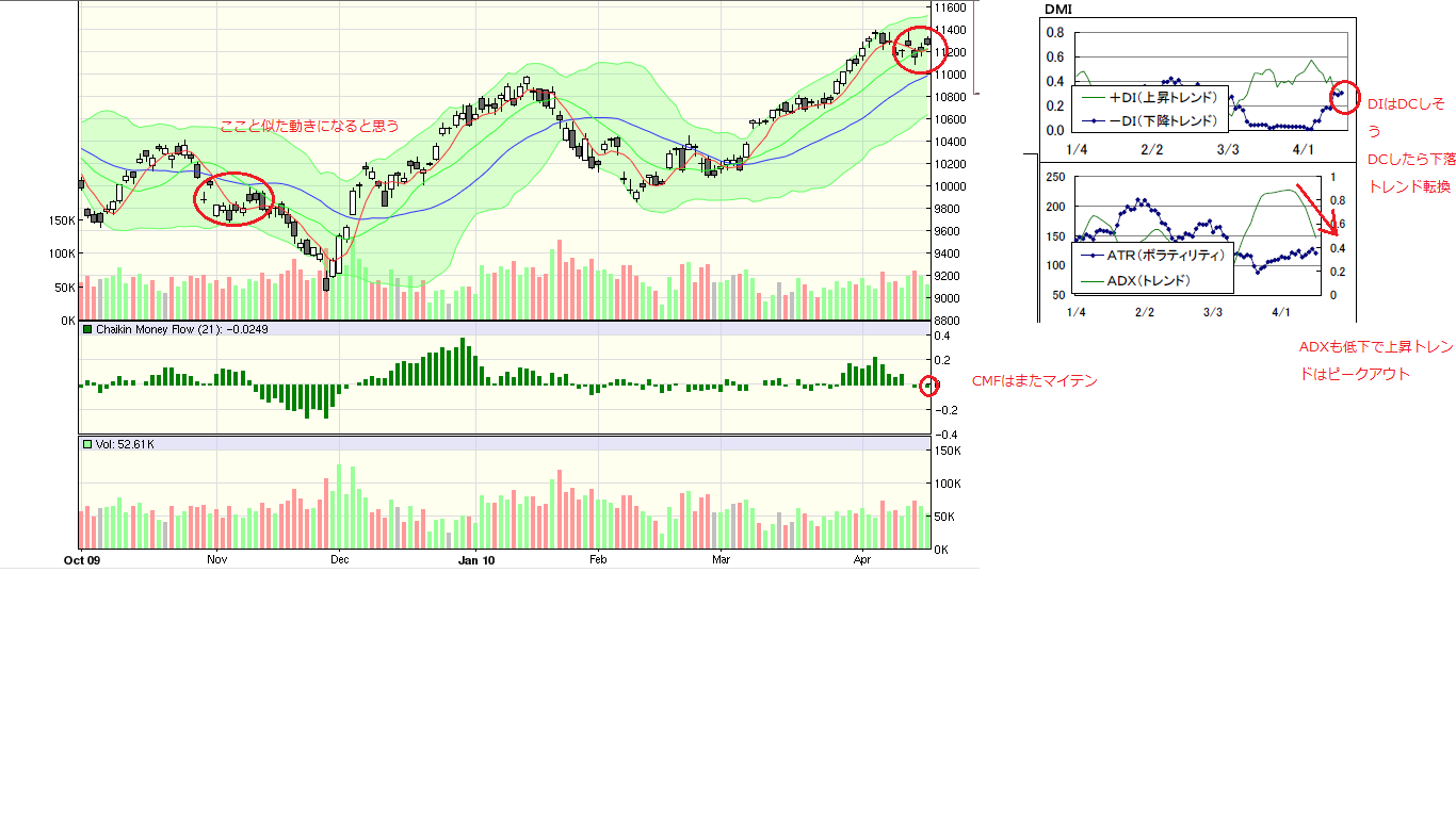・ADXはピークアウトしてるので、上昇トレンドもピークアウトしてると考える。