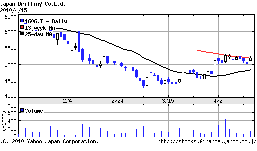 (図)…日足(3ヶ月)、黒線が25日移動平均、赤線が13週移動平均