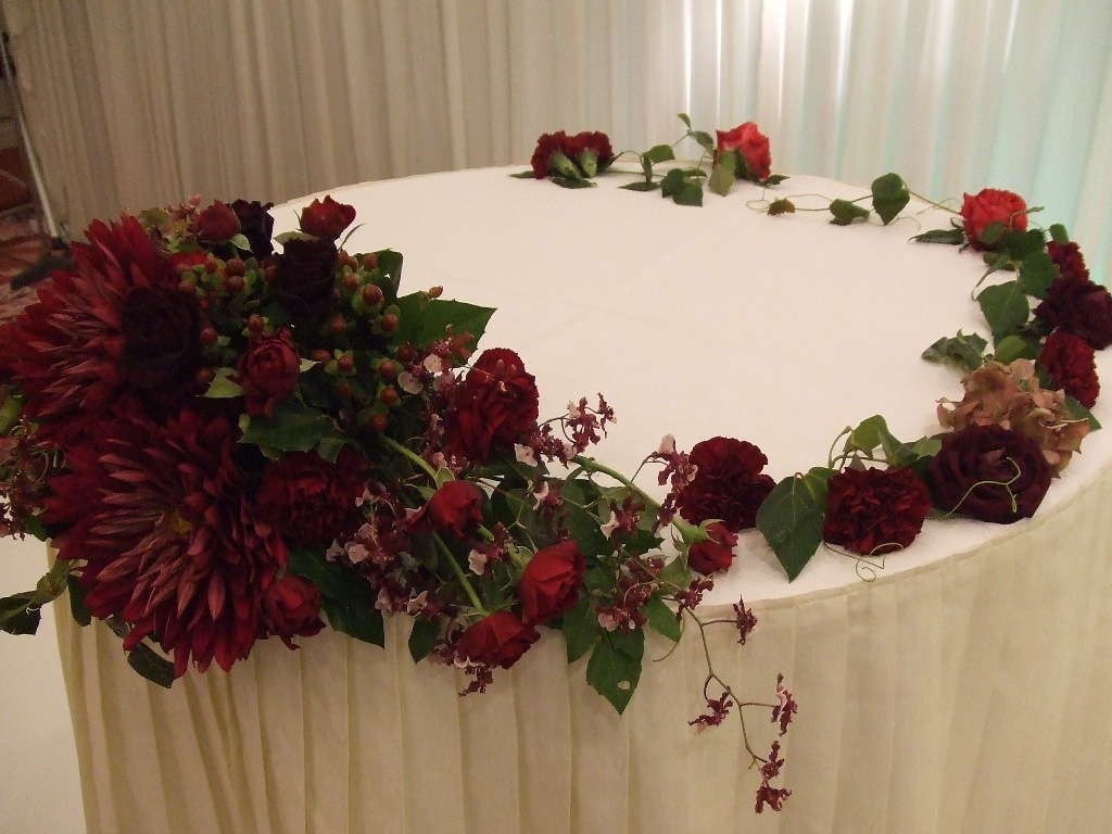 因みに、最後のテーブルは、皆さんに配られるためにケーキが運び出された後に残ったテーブル。でもお花がとても素敵に飾られていました!