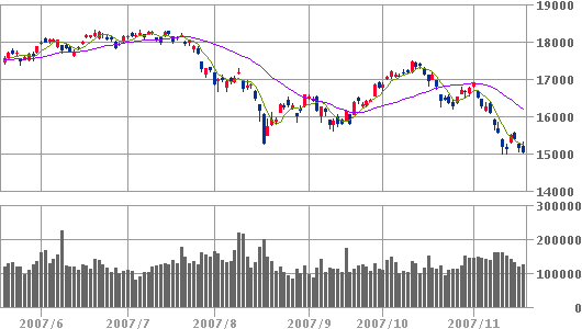 スタートは、割れそうですね。問題は、終値で15000円を守れるかどうかじゃないでしょうか?