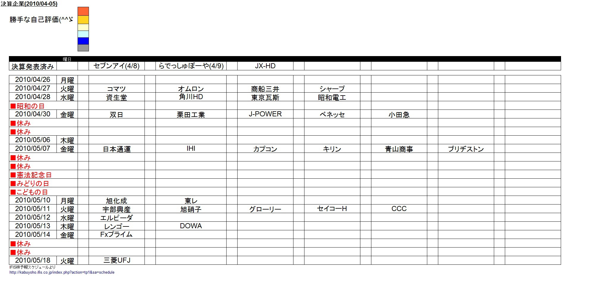 (鉄砲長)「お!ちゃんと決算日程まとめたのね!