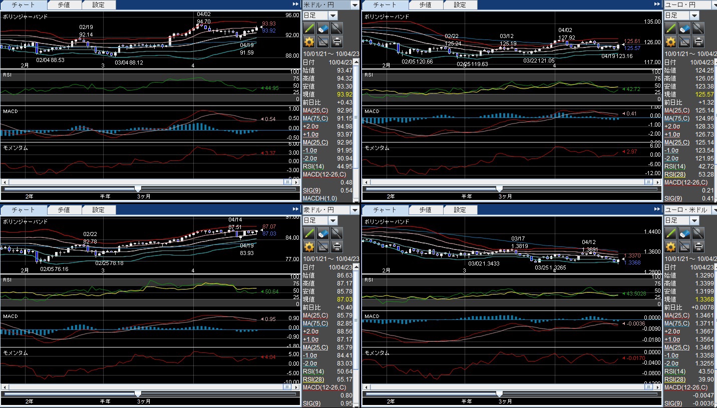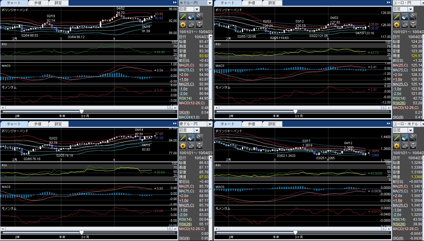 テクニカルボリンジャーバンド収縮から下に行ったやつがいくつかいます。