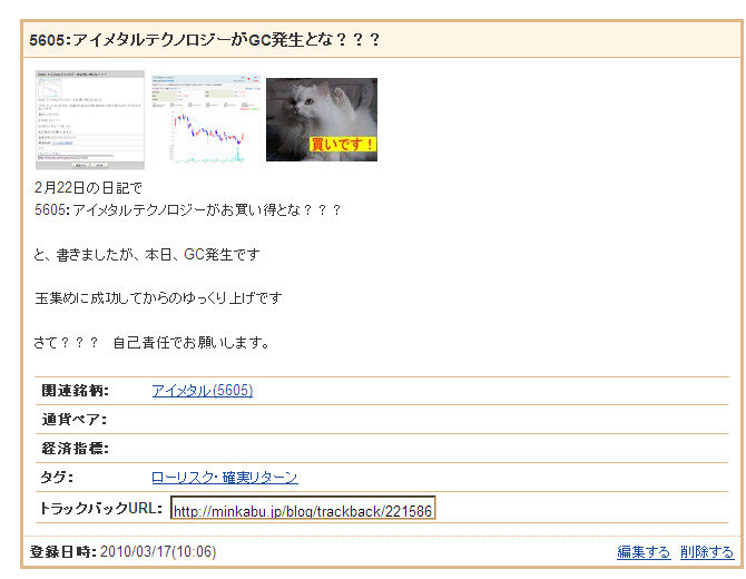 5605:アイメタルテクノロジーがGC発生とな???