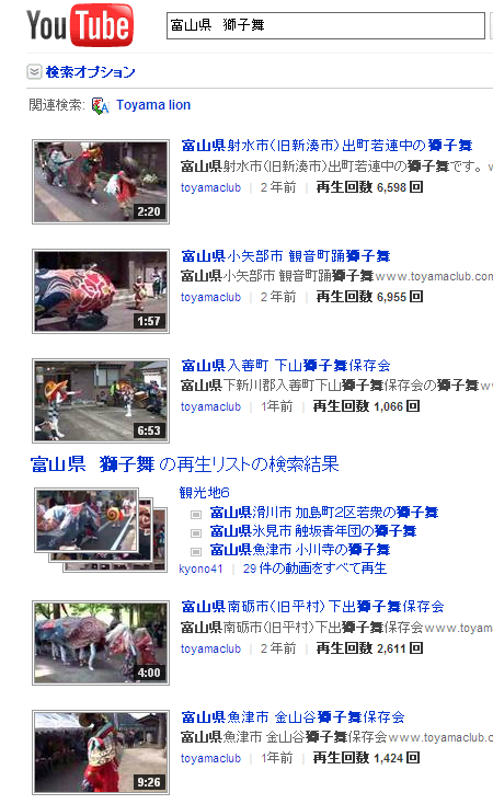 http://www.youtube.com/results?search_query=%E5%AF%8C%E5%B1%B1%E7%9C%8C%E3%80%80%E7%8D%85%E5%AD%90%E8%88%9E&aq=f